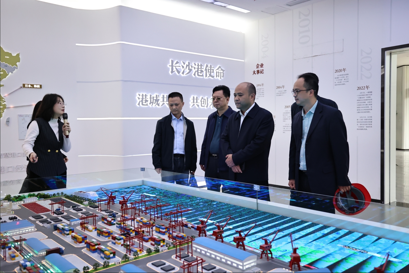 2025年11月7日,省財(cái)政廳經(jīng)建處處長(zhǎng)徐洪武帶隊(duì)調(diào)研水運(yùn)發(fā)展,第一站來到城陵磯港口集團(tuán)長(zhǎng)沙新港公司。徐洪武一行乘船從長(zhǎng)沙新港汽車滾裝碼頭上岸,先后到達(dá)長(zhǎng)沙新港專用鐵路生產(chǎn)作業(yè)現(xiàn)場(chǎng),詳細(xì)了解滾裝汽車業(yè)務(wù)、“水鐵公”多式聯(lián)運(yùn)業(yè)務(wù)開展情況,認(rèn)真聽取了關(guān)于長(zhǎng)沙新港2025年生產(chǎn)經(jīng)營(yíng)情況、項(xiàng)目推進(jìn)的情況匯報(bào)。 隨后,徐洪武一行參觀長(zhǎng)沙新港企業(yè)文化展廳、智控調(diào)度中心,深入了解長(zhǎng)沙港發(fā)展歷程,察看港口信息化平臺(tái)運(yùn)行情況,就數(shù)據(jù)共享機(jī)制、智能調(diào)度系統(tǒng)應(yīng)用等智慧港口建設(shè)與現(xiàn)場(chǎng)人員進(jìn)行深入交流。