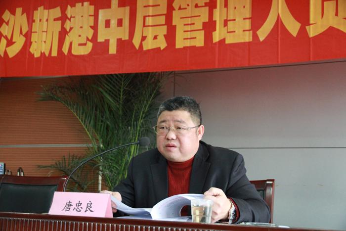 為檢查公司中層管理人員的履職情況,評(píng)價(jià)其一年來(lái)工作中的成績(jī)和不足,湖南長(zhǎng)沙新港有限責(zé)任公司于2013110召開(kāi)中層管理人員年度考評(píng)會(huì)。公司董事長(zhǎng)、黨委副書(shū)記、總經(jīng)理唐忠良在會(huì)上發(fā)表重要講話(huà)。