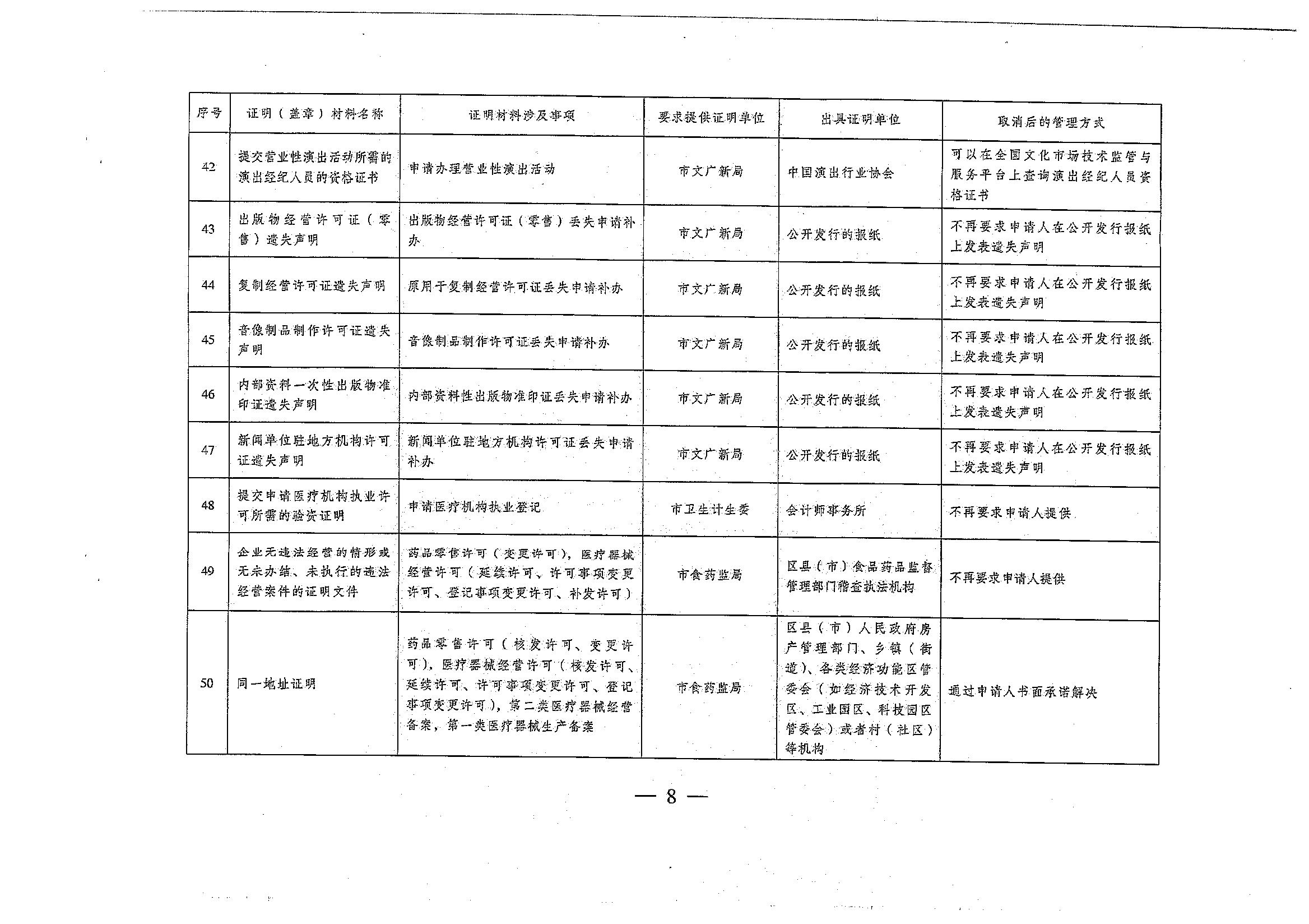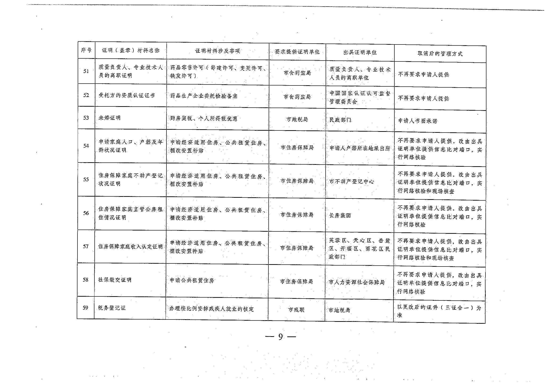 關(guān)于取消一批市直單位要求申請(qǐng)人提供的證明材料的通知