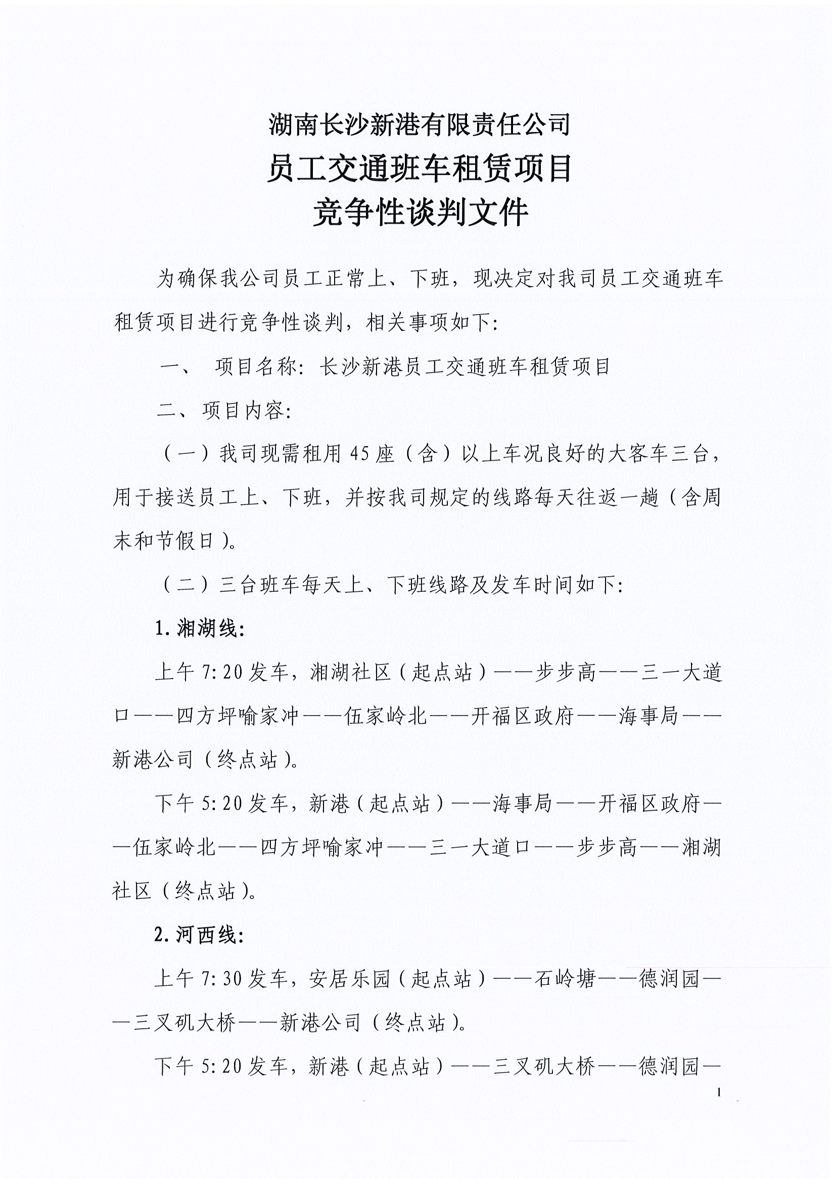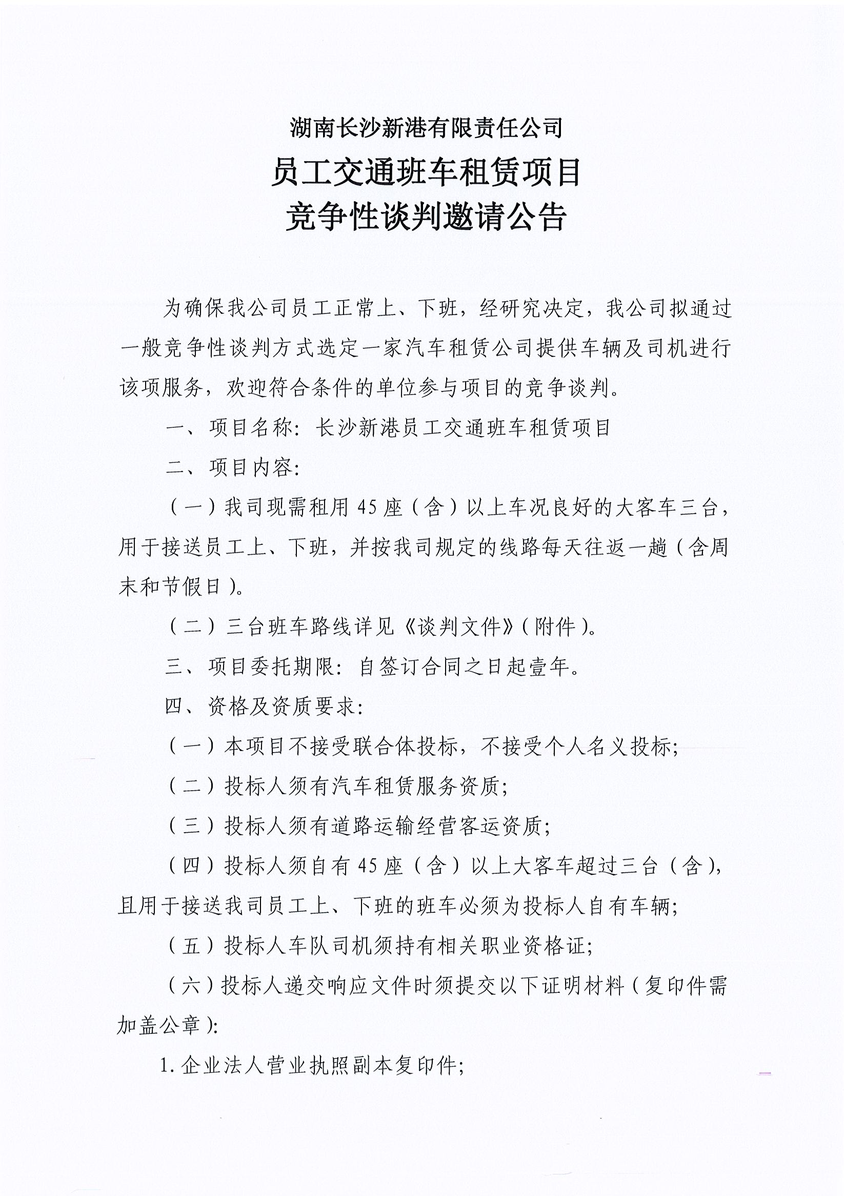 湖南長沙新港有限責(zé)任公司 員工交通班車租賃項(xiàng)目競爭性談判邀請公告