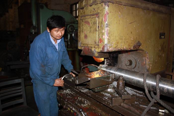 楊建安同志從來都是碰到越有難度的加工活,他越有興趣,越喜歡從中摸索,敢于接受任何技術(shù)上的挑戰(zhàn),這次也不例外。通過對需維修設(shè)備的了解和初步分析,他想出了最簡單、最快捷的拆裝方法,用最短的時間將已經(jīng)斷裂的傳動軸拆除了出來。他充足的干勁、熟練的操作都感染著在場所有的人。只見他認真地挑選好材料毛坯,細致地磨好所需刀具,一絲不茍、聚精會神,干起活來。在他的精心操作下,經(jīng)過兩個多小時搶制,新的傳動軸加工出來了,且規(guī)格和標準都符合裝配要求,在場的所有人才放心地松了口氣。