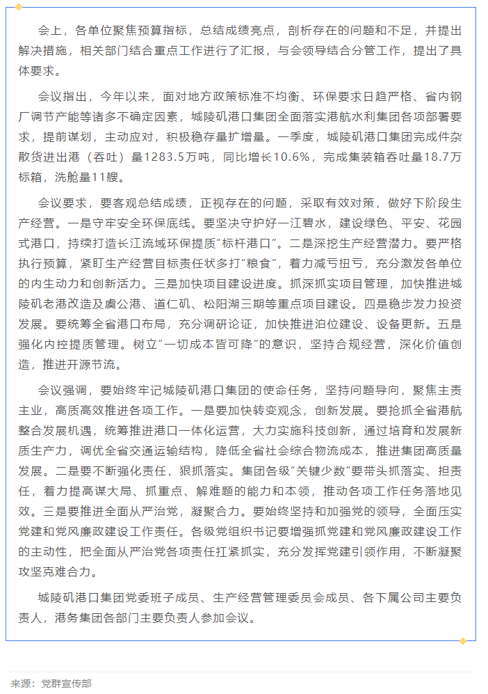 城陵磯港口集團(tuán)召開一季度生產(chǎn)經(jīng)營分析會