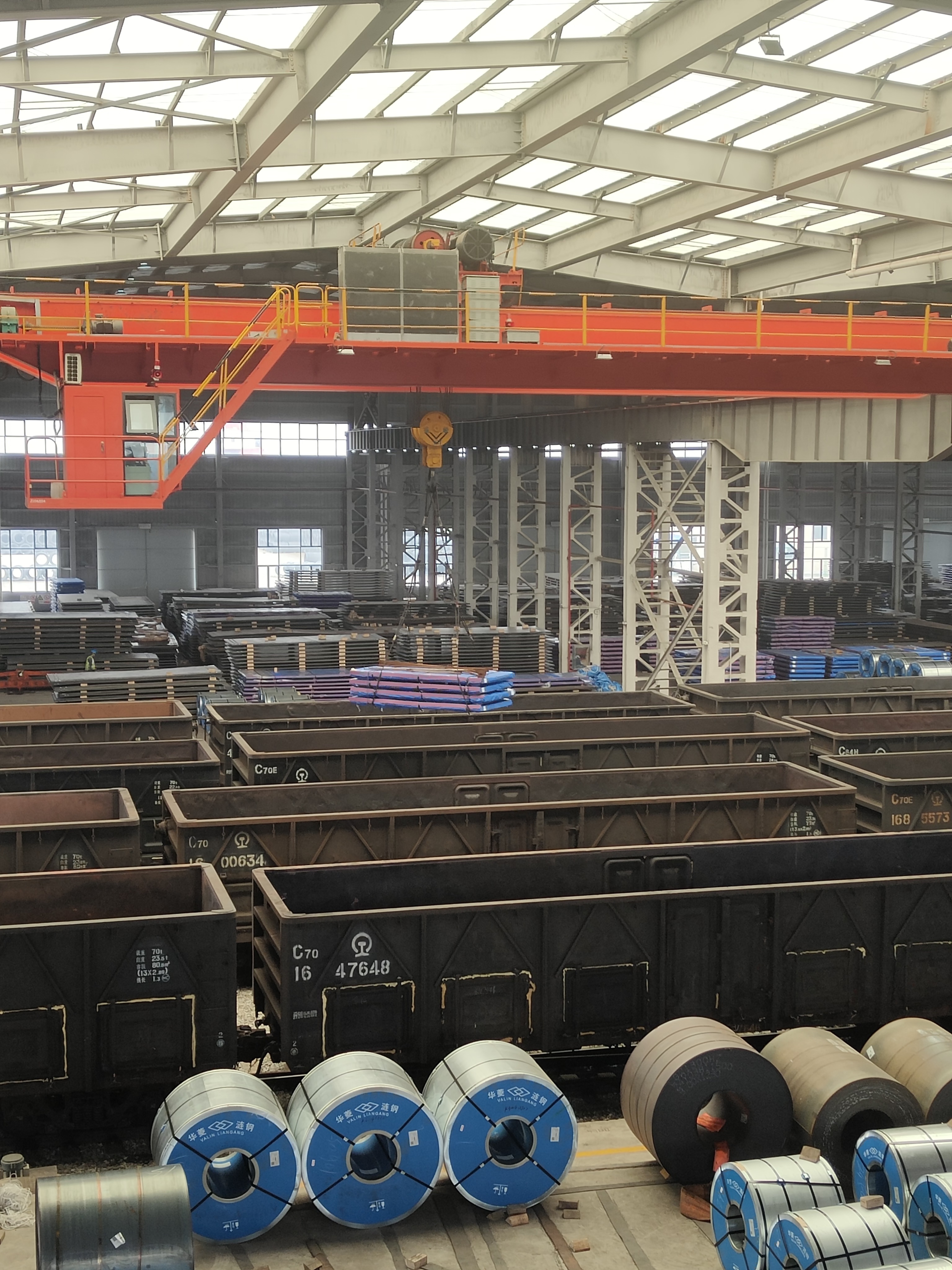 圖為“五一”期間,長(zhǎng)沙新港專用鐵路正在裝卸鋼卷