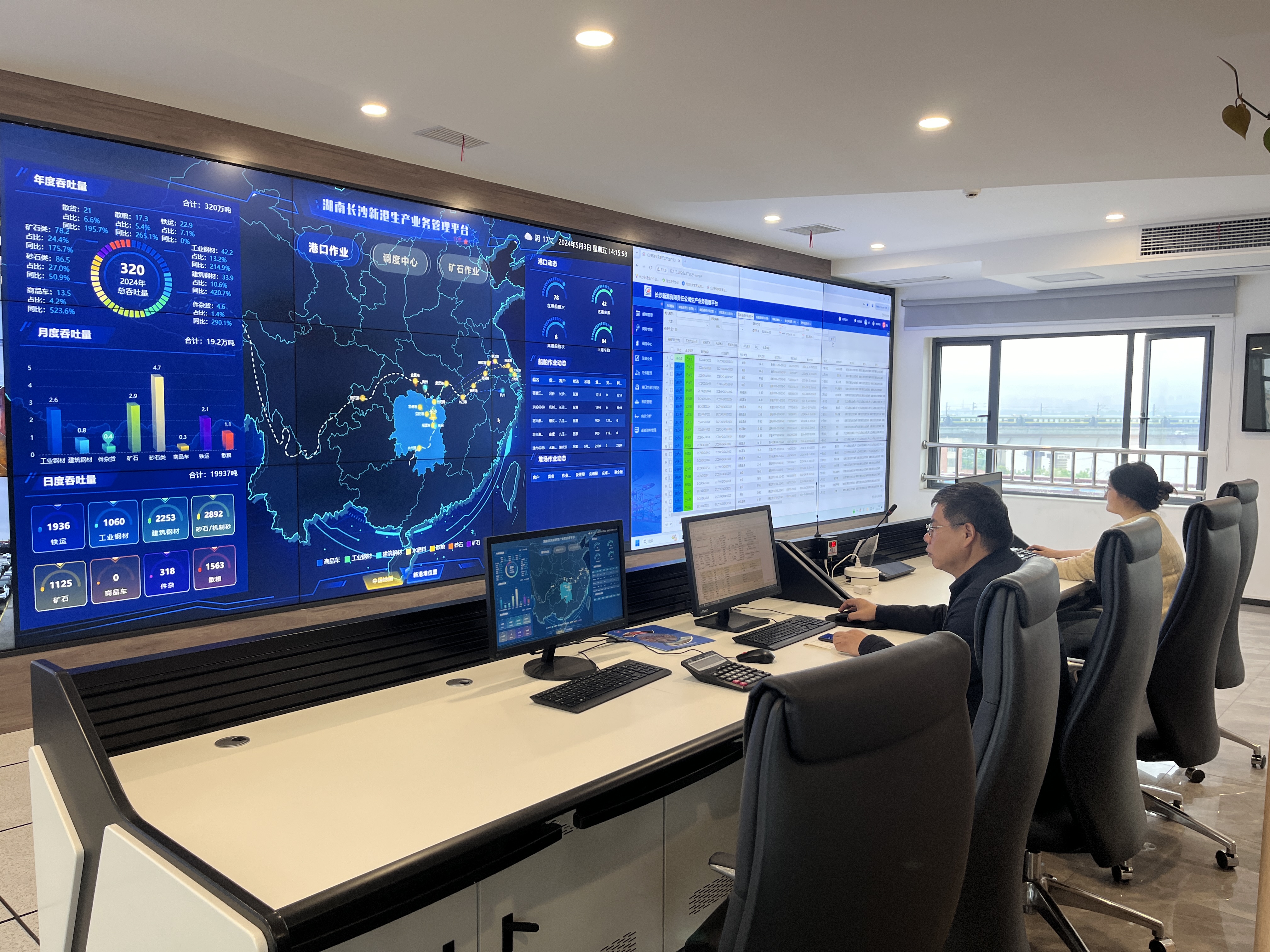 圖為“五一”期間,長(zhǎng)沙新港智控調(diào)度中心調(diào)度港區(qū)運(yùn)行。