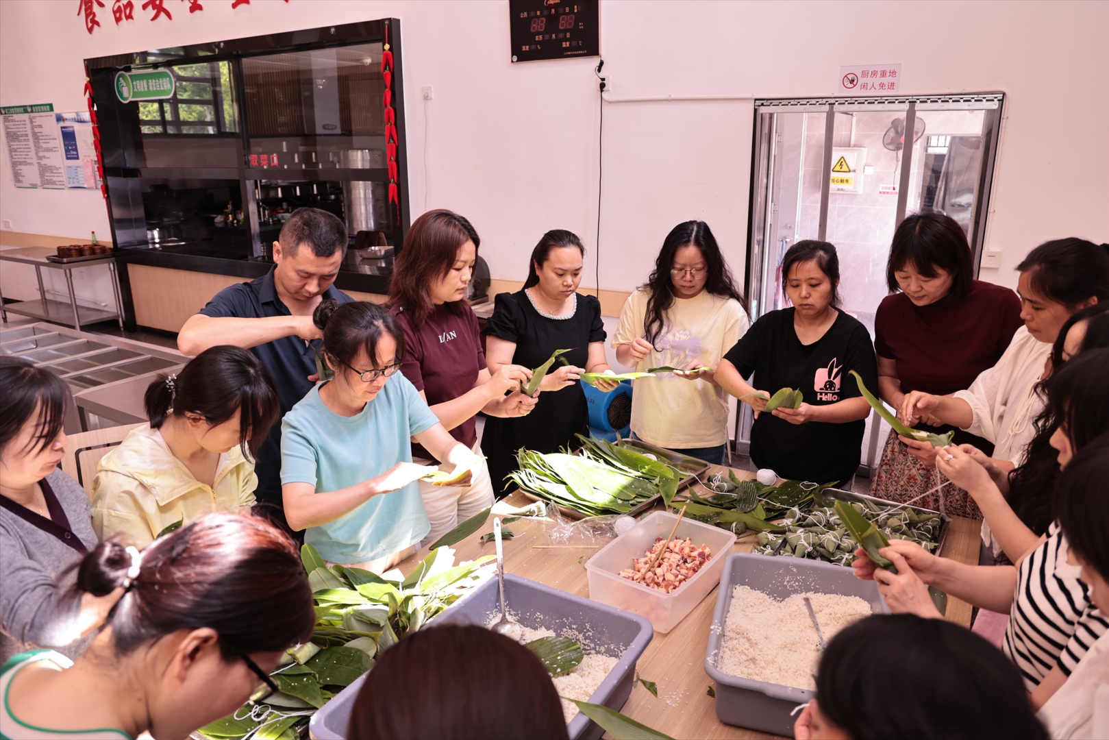 “粽葉要卷成漏斗狀,米別裝太滿,線要纏緊才不會(huì)漏!”5月30日,城陵磯港口集團(tuán)長(zhǎng)沙新港食堂里粽葉飄香、笑聲朗朗,一場(chǎng)“端午粽香情,共筑企業(yè)夢(mèng)”包粽子主題活動(dòng)正溫馨上演。公司工會(huì)以傳統(tǒng)習(xí)俗為紐帶,為員工們搭起“文化橋”“連心橋”。 活動(dòng)現(xiàn)場(chǎng),“包粽達(dá)人”主動(dòng)當(dāng)起“小老師”,手把手教新手折葉、填米、捆扎——有的粽葉卷得歪歪扭扭,有的糯米漏得滿桌都是,卻換來(lái)一陣又一陣的歡笑。不一會(huì)兒,三角粽、四角粽、“迷你粽”在桌上排起隊(duì),裹著蜜棗的甜、蛋黃的香,更裹著同事間的熱絡(luò)情誼。 午餐時(shí)分,員工們圍坐一起,捧著自己包的“專屬粽子”,你嘗我的蜜棗粽,我品你的咸蛋黃粽,飯桌上的討論比包粽時(shí)更熱鬧。“平時(shí)各忙各的,今天聽霞姐講老家賽龍舟的習(xí)俗,凌哥教我綁線小竅門,這粽子吃著都更香了!”設(shè)備部小許舉著粽子笑著說(shuō)。 從“指尖技藝”到“舌尖美味”,這場(chǎng)活動(dòng)不僅讓員工在動(dòng)手體驗(yàn)中感受端午“文化味”,更以“包粽”為媒,打破部門壁壘,讓跨崗位交流更自然。 工會(huì)負(fù)責(zé)人表示,我們希望通過(guò)傳統(tǒng)節(jié)日活動(dòng),把“家文化”融進(jìn)日常,讓員工在企業(yè)里找到歸屬感和幸福感。今后,我們將在集團(tuán)的指導(dǎo)和支持下,舉辦更多活動(dòng),豐富員工生活,營(yíng)造更加和諧、溫馨的企業(yè)文化氛圍。