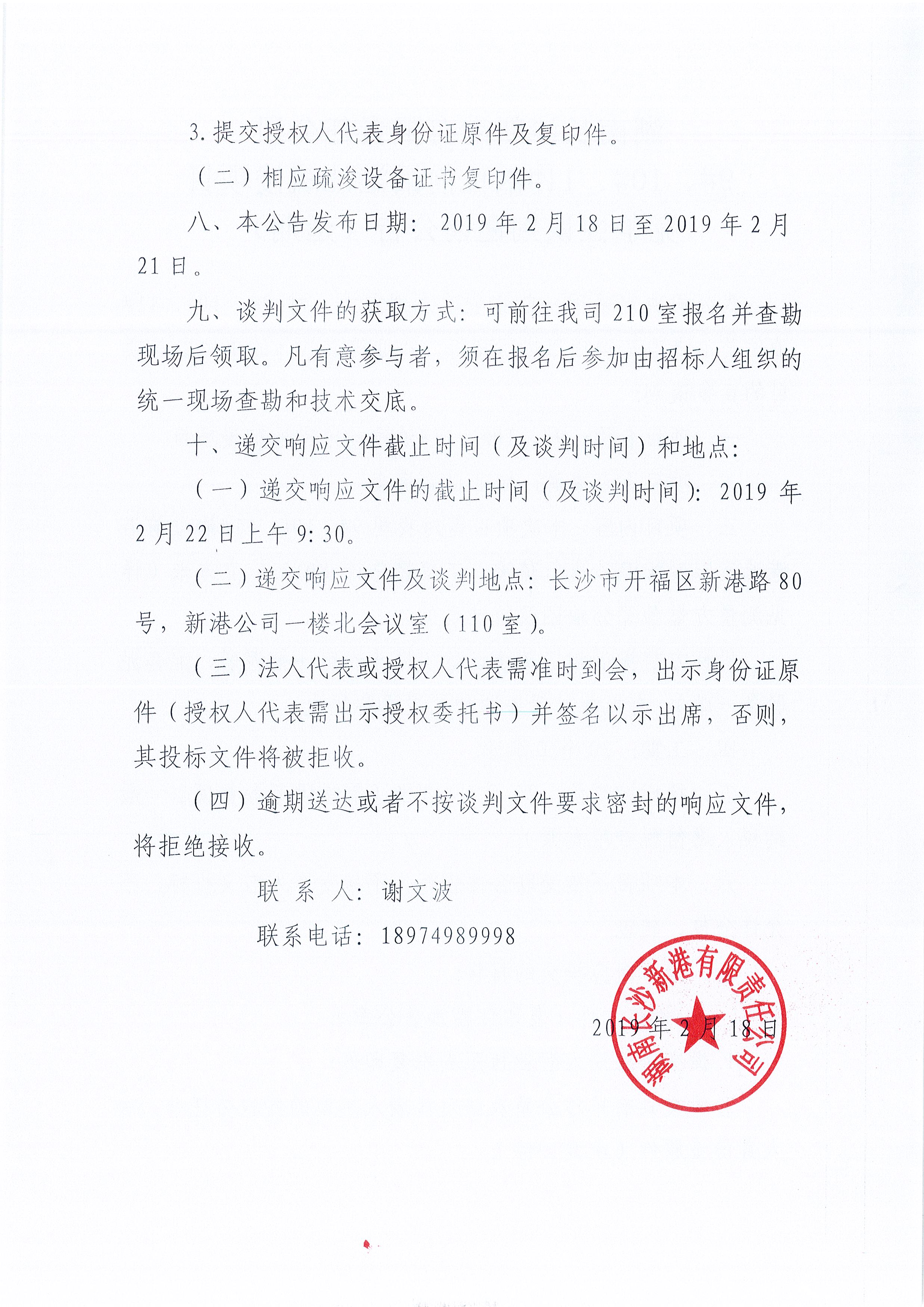 湖南長沙新港有限責(zé)任公司 9#、10#、11#泊位前沿港池疏浚項(xiàng)目競爭性談判邀請(qǐng)公告(延期)