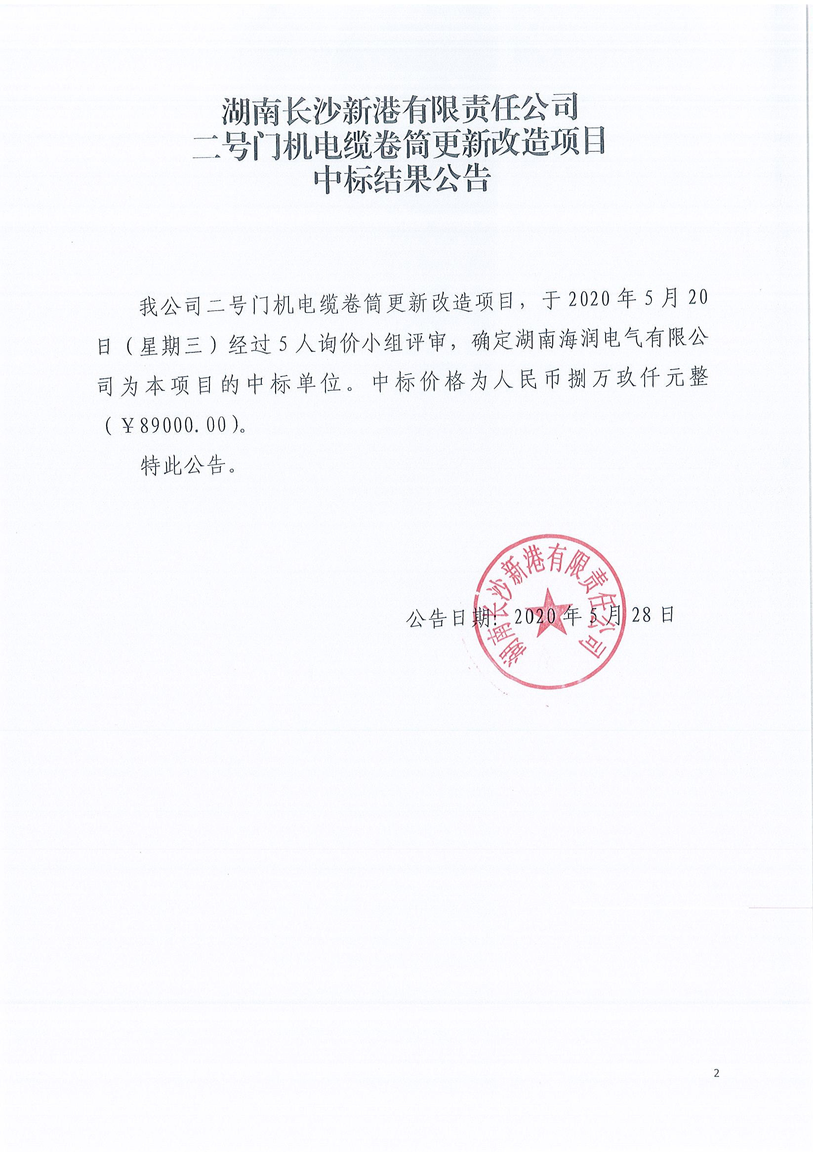 二號門機(jī)電纜卷筒更新改造項目《中標(biāo)結(jié)果公告》