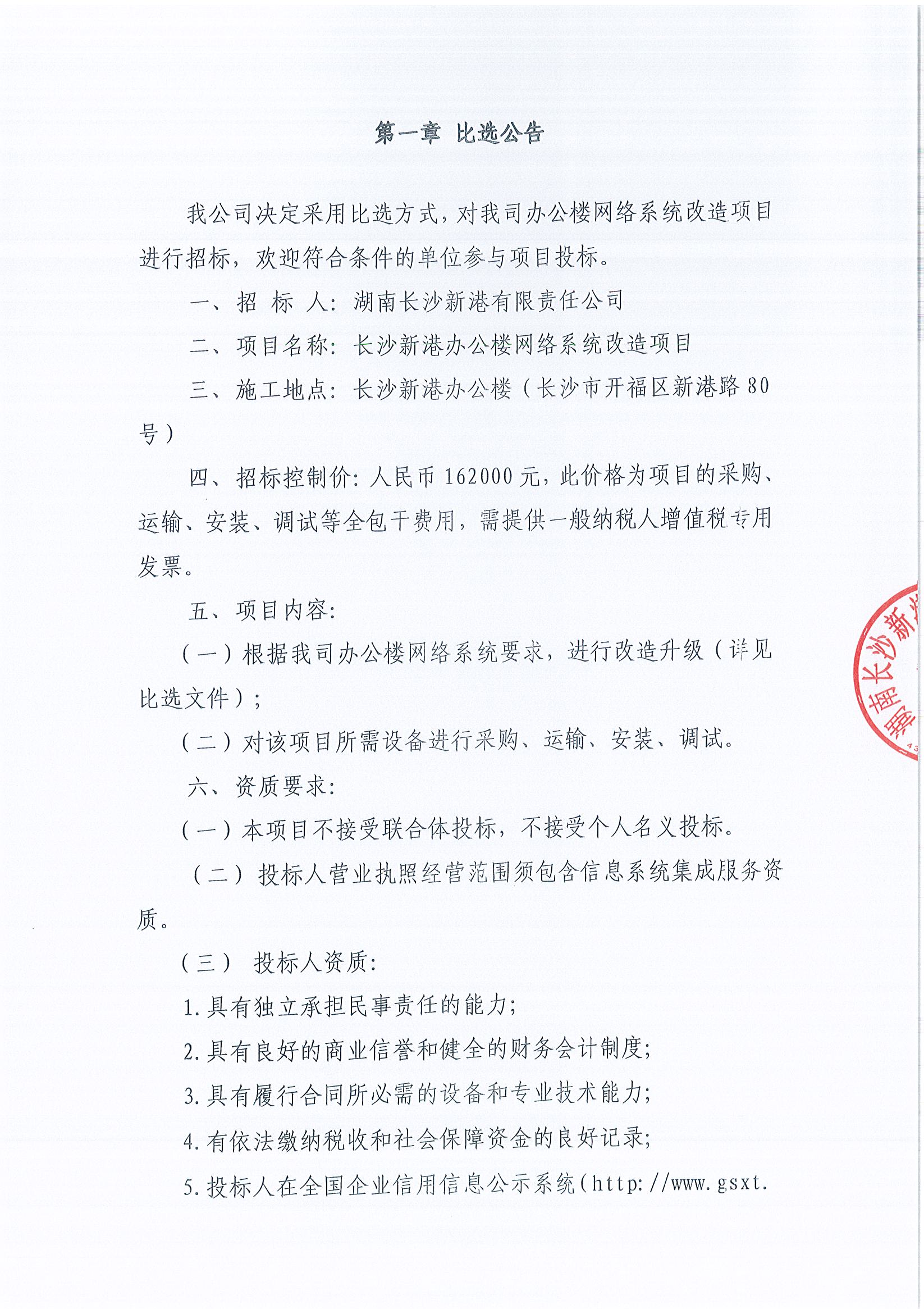 湖南長(zhǎng)沙新港有限責(zé)任公司辦公樓網(wǎng)絡(luò)系統(tǒng)改造項(xiàng)目招標(biāo)公示