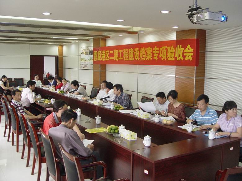 2010年6月7日,湖南省交通運輸廳副巡視員郭紫星、辦公室副主任周超,省檔案局副局長胡振榮、業(yè)務(wù)處處長白明標(biāo)、業(yè)務(wù)處副處易小青,省交通建設(shè)質(zhì)量監(jiān)督室主任周榮輝、基建處副處長易儉一行,對霞凝新港二期工程建設(shè)檔案進(jìn)行專項驗收。