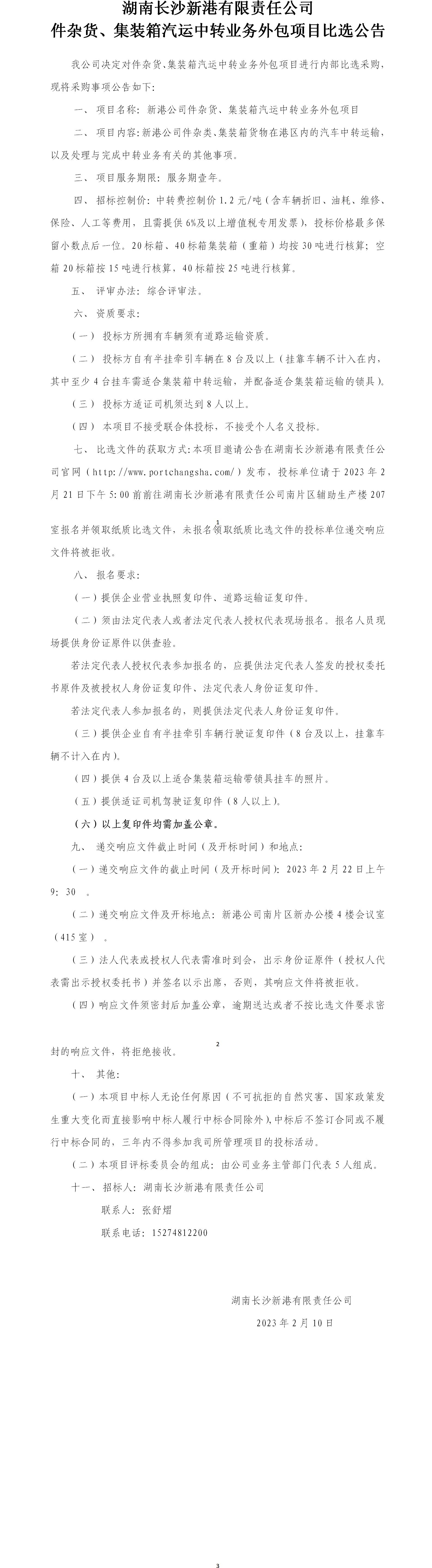 件雜貨、集裝箱汽運(yùn)中轉(zhuǎn)業(yè)務(wù)外包項(xiàng)目比選公告