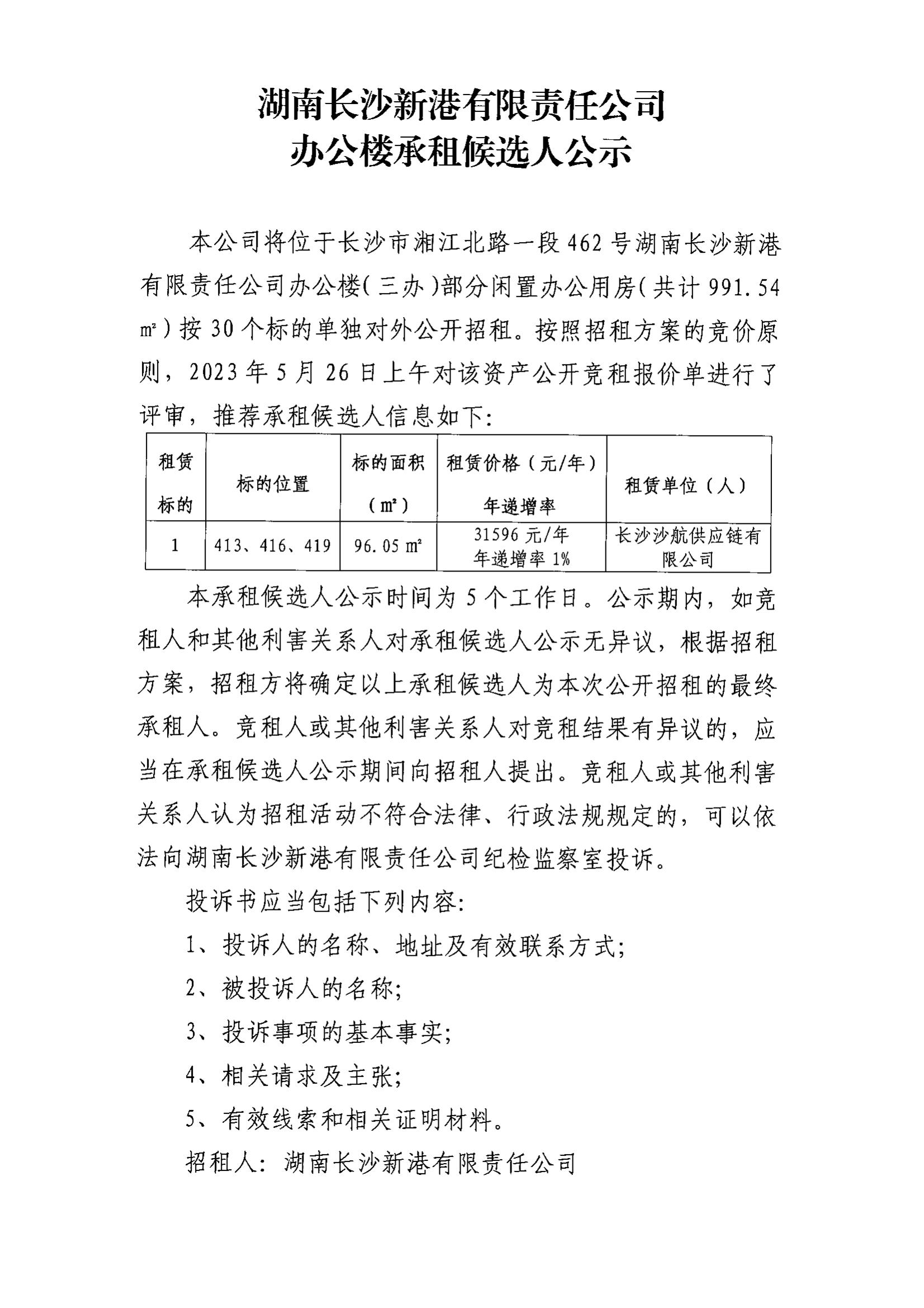 新港公司辦公樓承租候選人公示