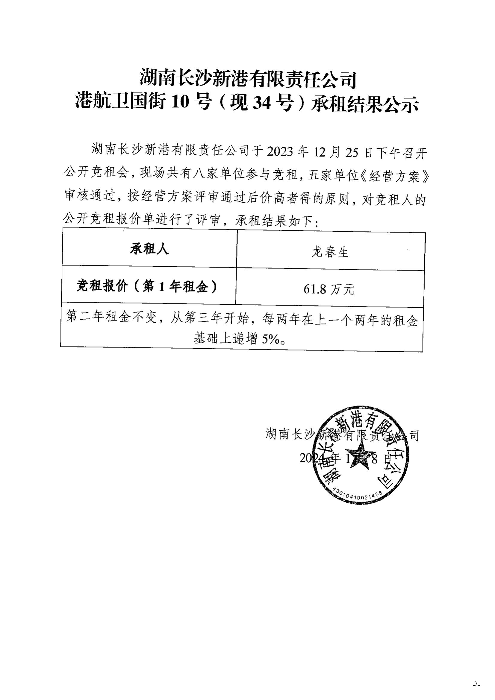 港航衛(wèi)國(guó)街10號(hào)(現(xiàn)34號(hào))承租結(jié)果公示