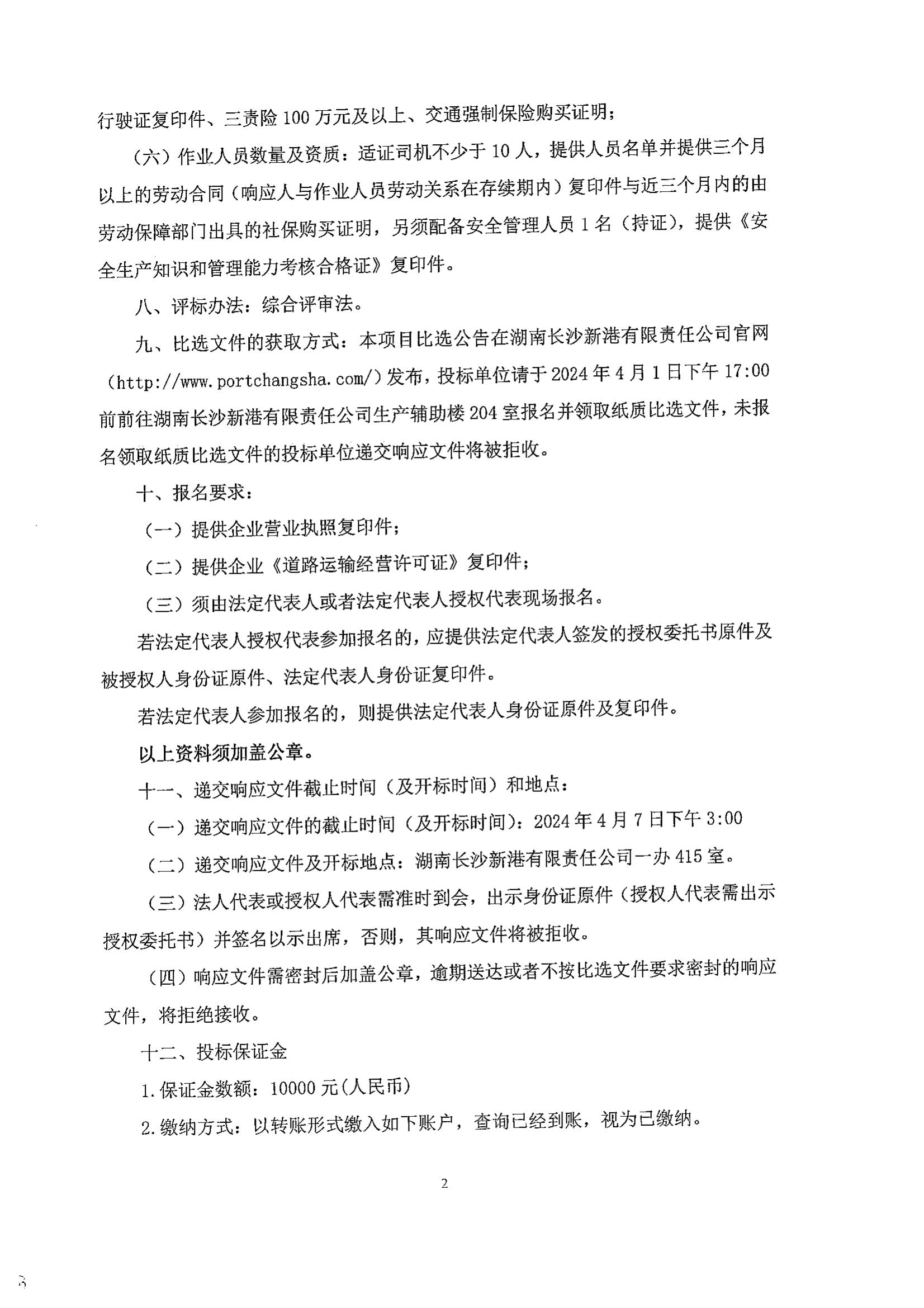 長沙新港件雜貨、鋼材、集裝箱汽運中轉業(yè)務外包項目比選公告