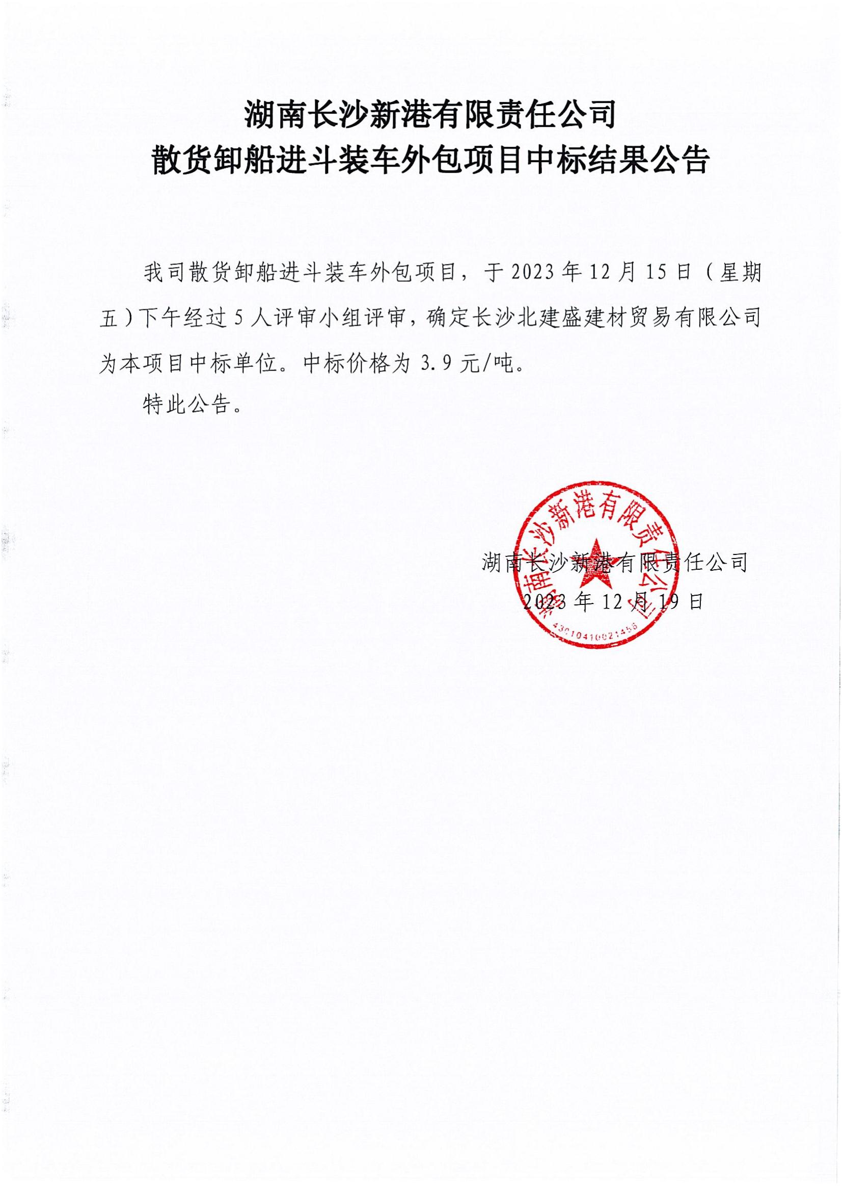 長沙新港散貨卸船進(jìn)斗裝車外包項目中標(biāo)結(jié)果公示