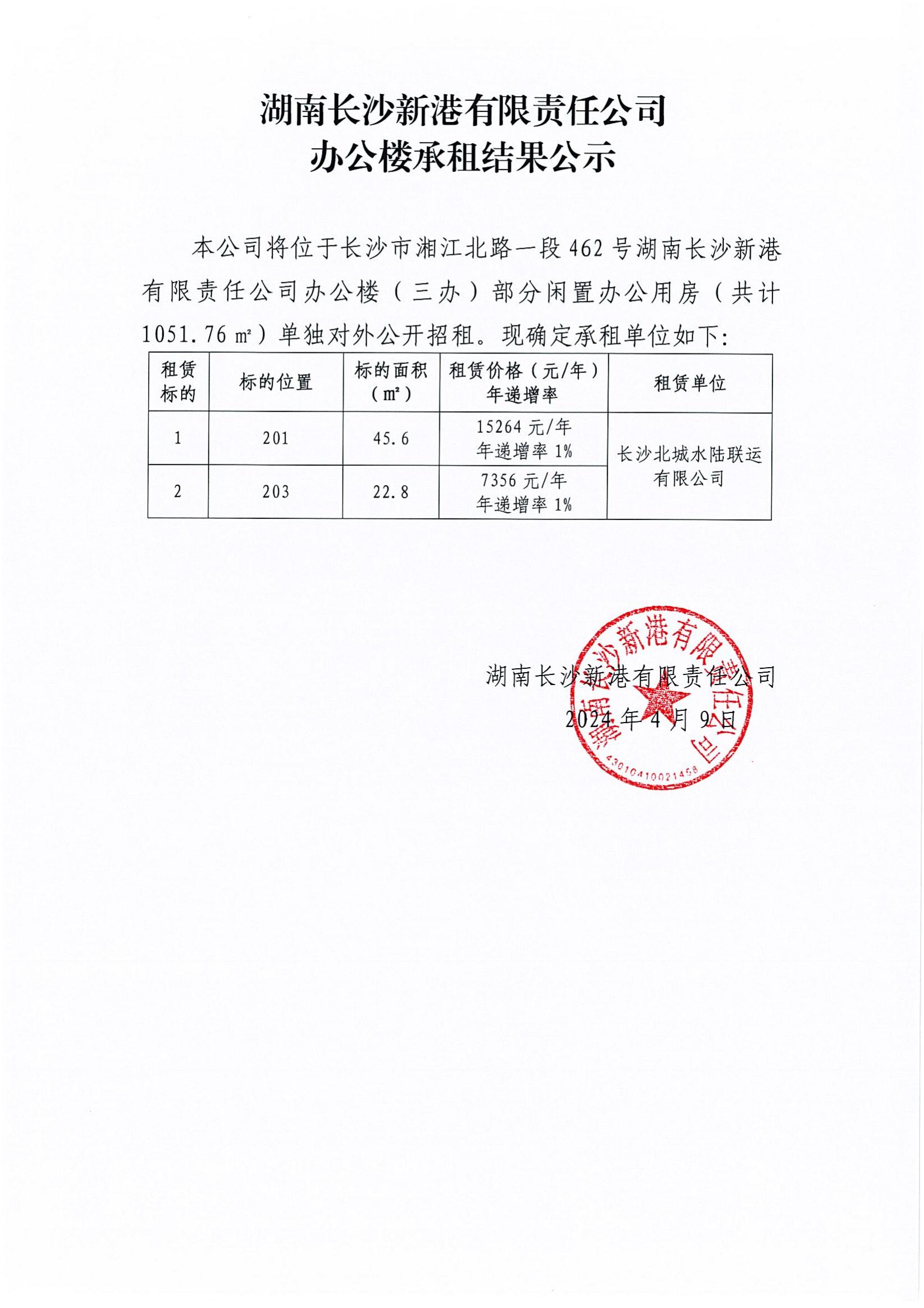 湖南長沙新港有限責(zé)任公司辦公樓承租結(jié)果公示
