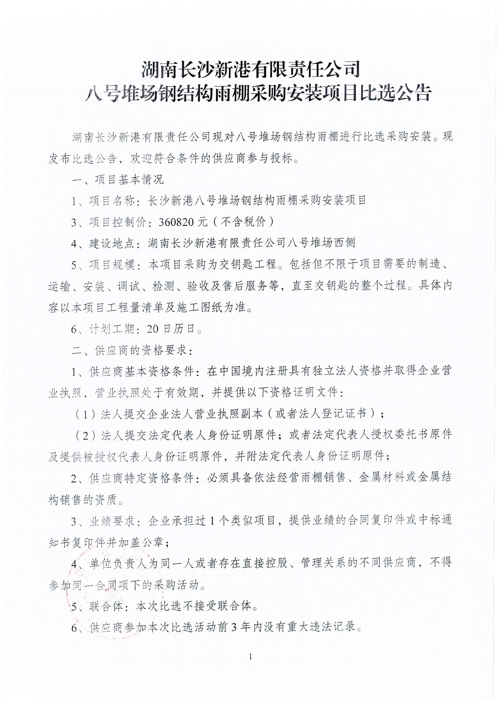 長沙新港八號堆場鋼結(jié)構(gòu)雨棚采購安裝項目比選公告